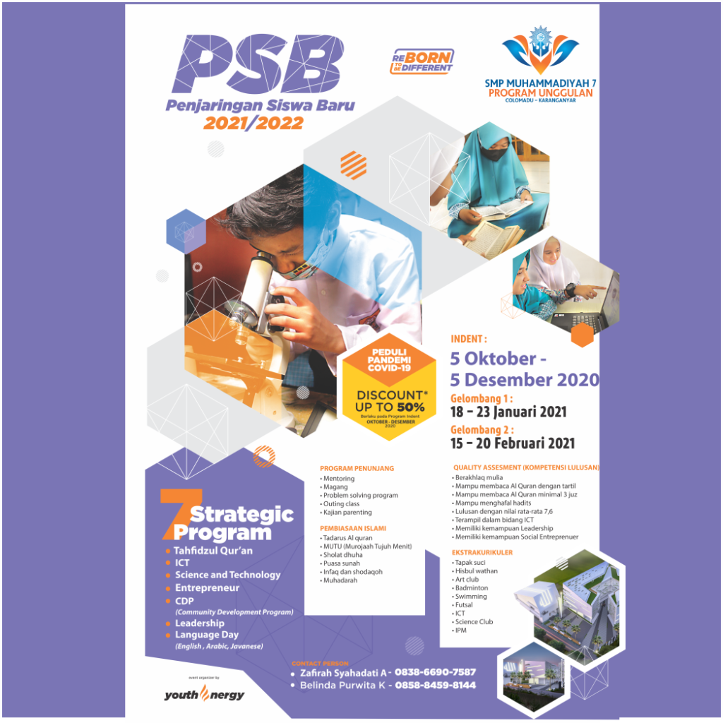 OPEN GELOMBANG IPPDB 2021/2022SMP Muhammadiyah 7 Program Unggulan Colomadu________________ reBorn ToBe Different School💡Peduli Pandemi Covid-19 🔊 Discount UP To 25% Wakaf Tunai(berlaku pada Gelombang 1) =============================================================== Open Gelombang Isampai 23 JANUARI 2021 Pendaftaran Online:Link Pendaftaranhttps://s.id/GELOMBANG1SMPMUTU Tempat Pendaftaran Offline🏬 SMP MUTU ColomaduKlemboran, Baturan, Read More …