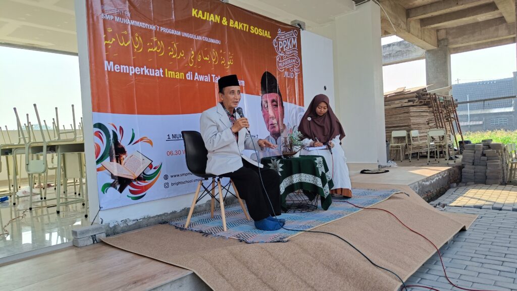 Sabtu, (30/7/22) – SMP Muhammadiyah 7 Colomadu mengadakan kajian PPKM (Para Pencari Keberkahan Muharam) jilid 2 dengan tema “Memperkuat Iman di Awal Tahun Islam”. Kajian ini digelar guna menyambut tahun baru islam, 1 Muharam 1444 H. Kajian yang dihadiri oleh guru, murid, wali murid dan masyarakat sekitar SMP Mutu ini dilaksanakan di halaman SMP Mutu yang beralamat di Bolon, Colomadu, Karanganyar.