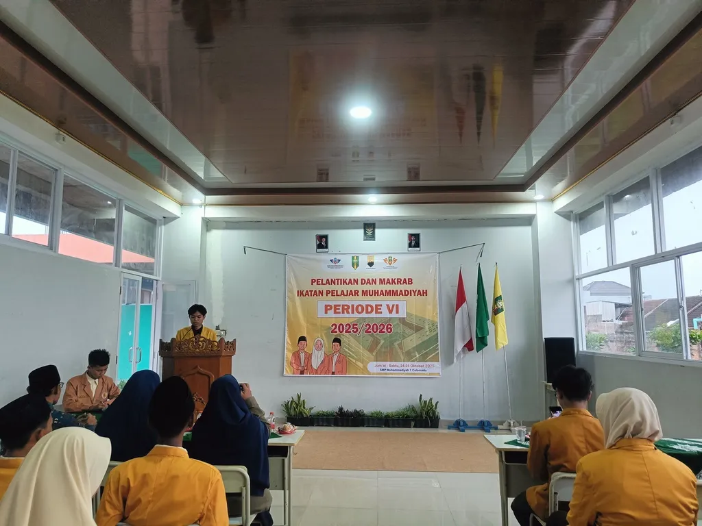 Colomadu, 24 Oktober 2026 – SMP Muhammadiyah 7 Program Unggulan (MUTU) Colomadu menyelenggarakan Pelantikan Ikatan Pelajar Muhammadiyah (IPM) Ranting Periode VI pada Jumat, 24 Oktober 2025. Acara berlangsung khidmat di Aula SMP MUTU Colomadu dengan suasana penuh semangat dan kebersamaan. Kepanitiaan diketuai oleh Muhammad Askar Hawari, dibantu oleh semua pengurus IPM periode VI dengan binaan Sultan Arif Wicaksana.