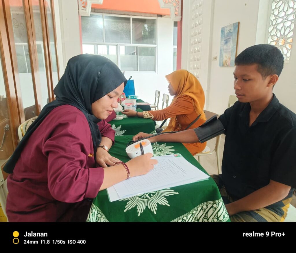 Sebelum workshop dimulai, panitia menyediakan layanan cek kesehatan gratis. Pemeriksaan meliputi pengecekan gula darah dan tekanan darah. Mahasiswa Universitas Muhammadiyah PKU Surakarta turut terlibat sebagai tim medis pendamping. Antrean panjang terlihat sejak sore hari, namun para peserta tetap tertib dan sabar menunggu giliran. Baik orang tua, guru, maupun siswa memanfaatkan kesempatan tersebut untuk mengetahui kondisi kesehatan masing-masing.
