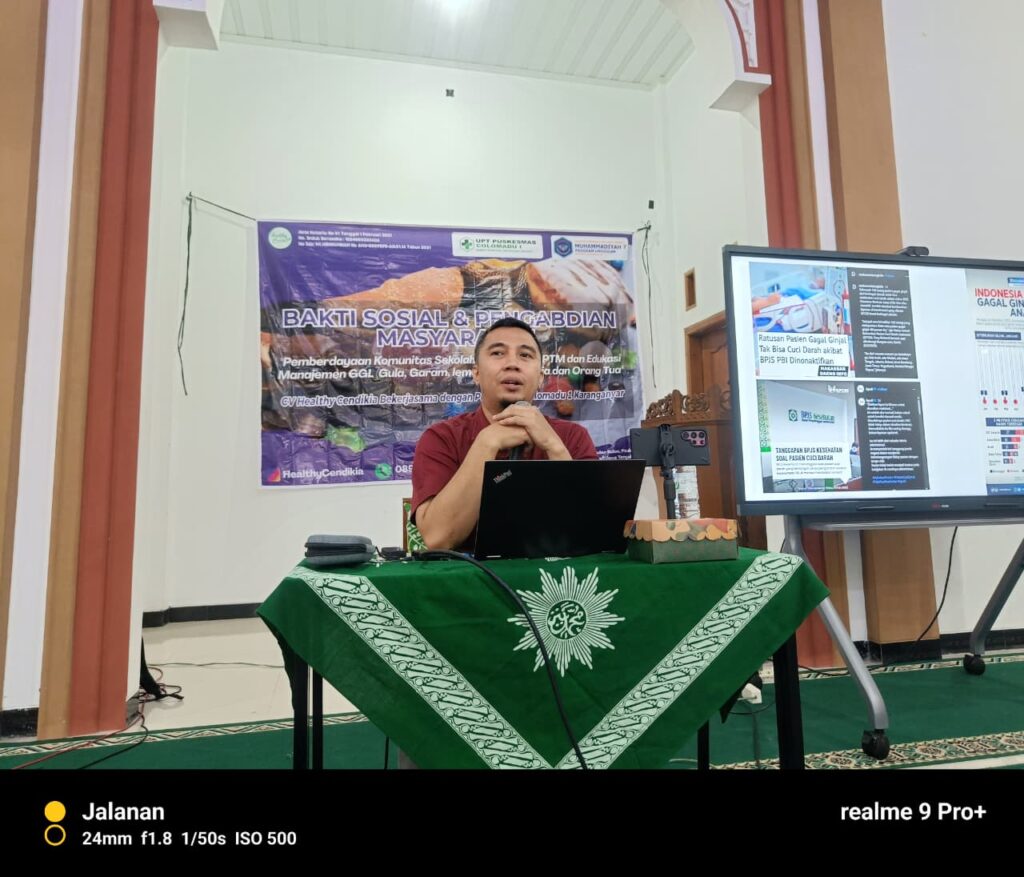 Memasuki sesi utama, workshop kesehatan dipandu oleh Bapak Pandu Aseta, dosen Universitas Muhammadiyah PKU Surakarta. Dalam pemaparannya, ia menjelaskan keterkaitan antara pola makan sehari-hari dengan kesehatan organ tubuh, khususnya ginjal. Ia juga memberikan panduan praktis dalam memilih jajanan sehat, membatasi konsumsi makanan olahan, serta membiasakan minum air putih yang cukup.